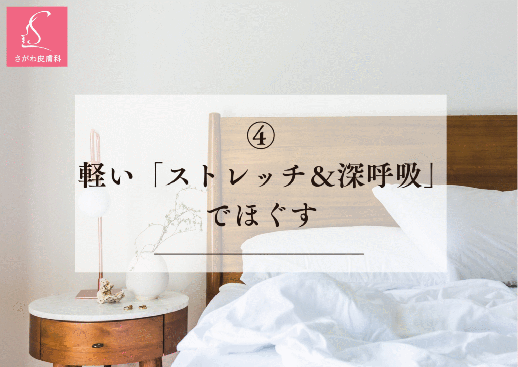 就寝前の軽いストレッチは、凝り固まった筋肉をゆるめ、副交感神経を優位にします。