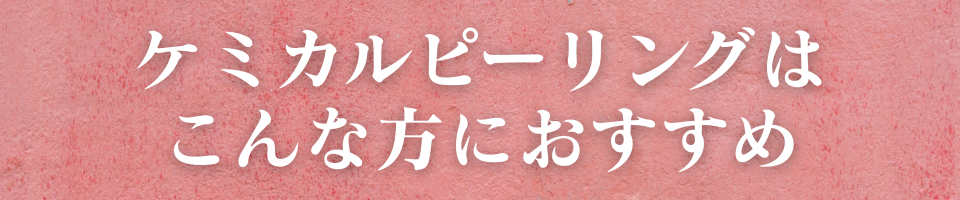 ケミカルピーリングとは、お肌の表面に薬液を塗り、肌の生まれ変わりをスムーズに整えることで、トラブルの起きにくい『つるんとした健やかな素肌』へと整えます。